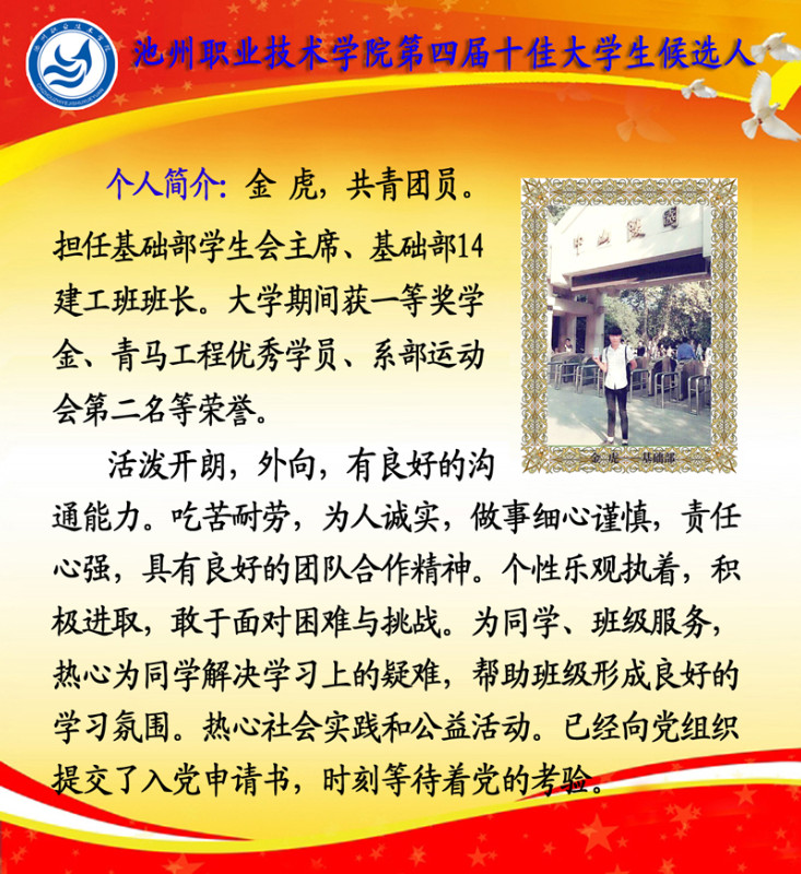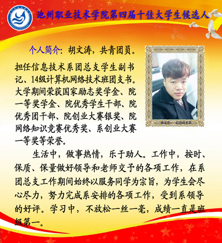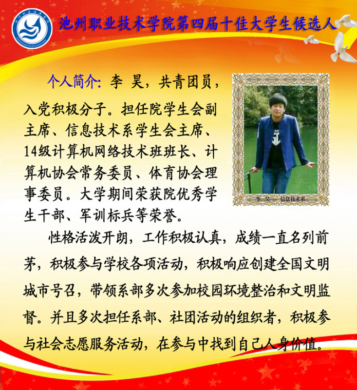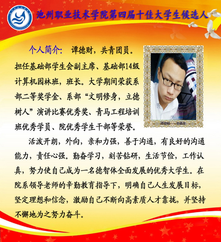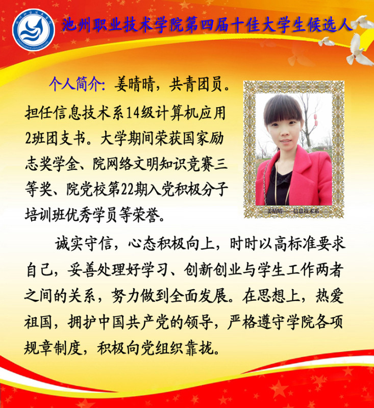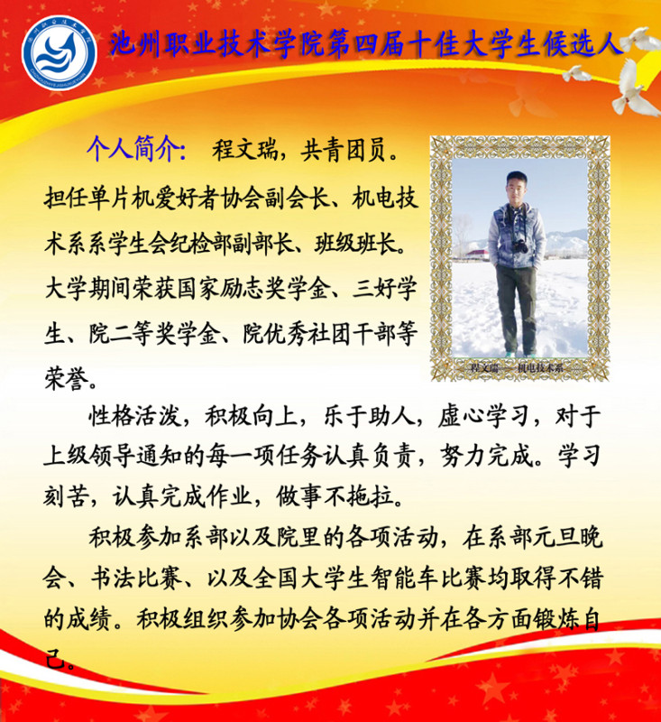 第四届校园“十佳大学生”候选人情况简介如下: