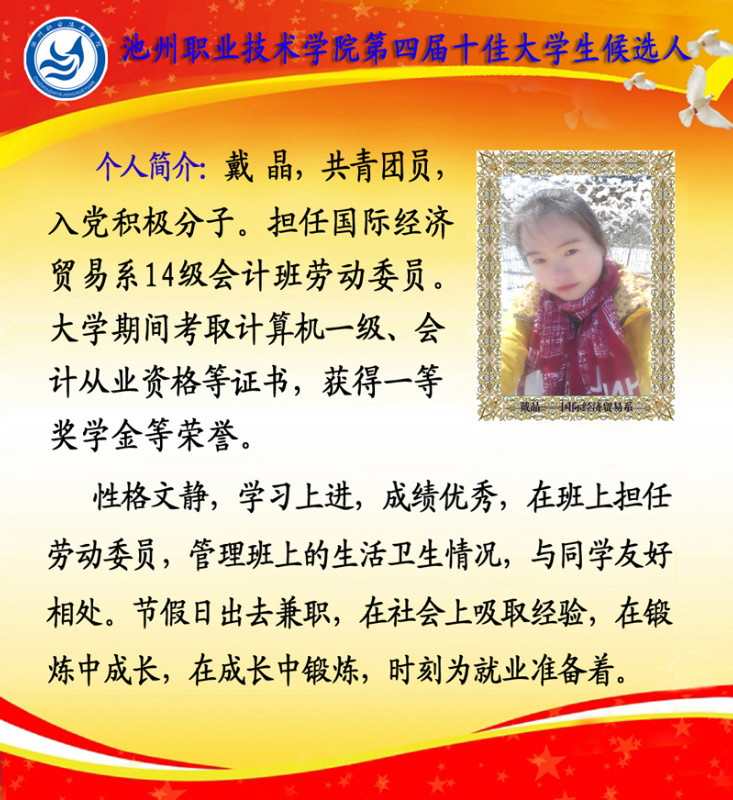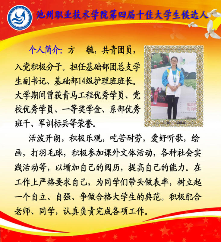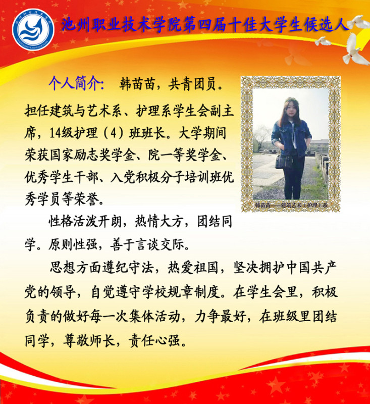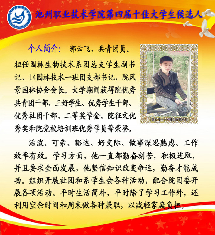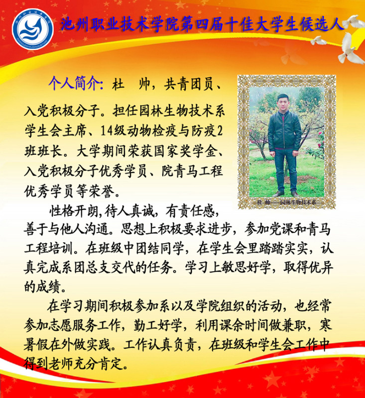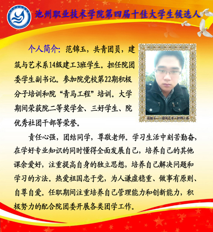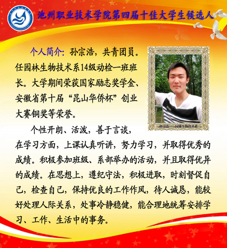 第四届校园“十佳大学生”候选人情况简介如下: