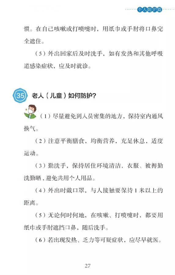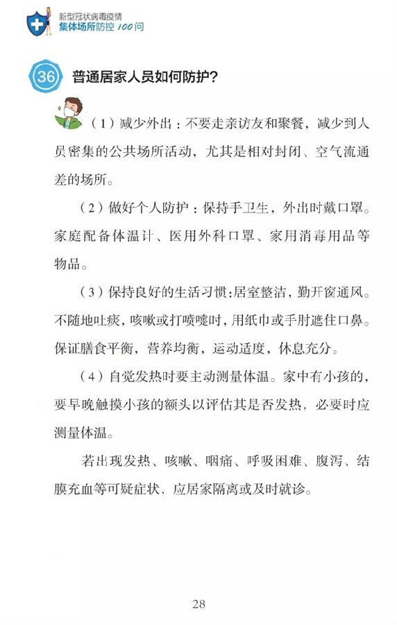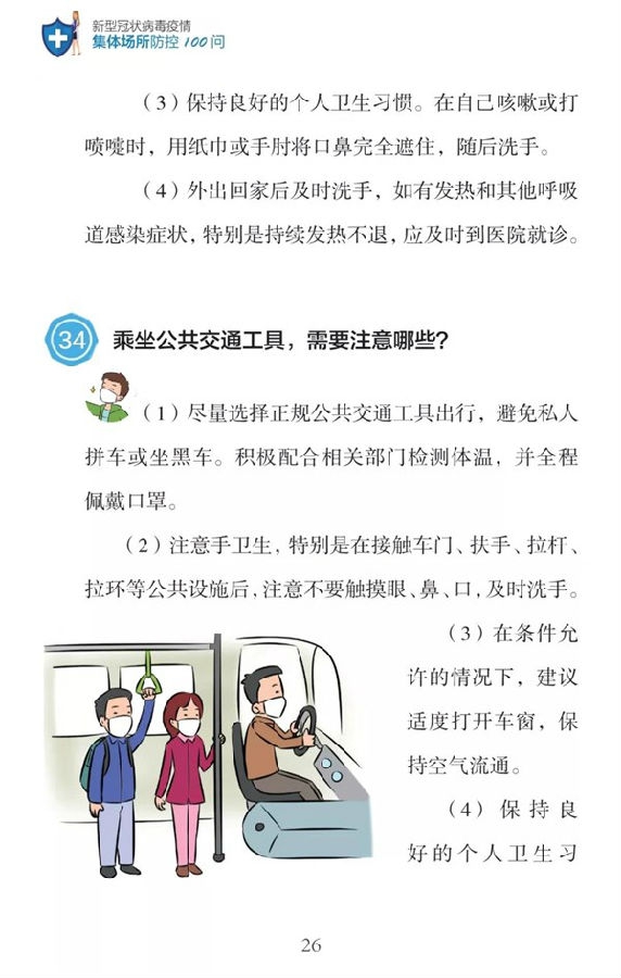 新型冠状病毒疫情集体场所防控100问(个人防护篇)